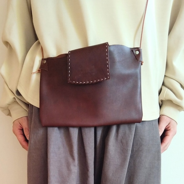 【再販】本革 シュリンクレザーのサコッシュバッグ