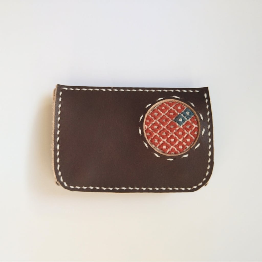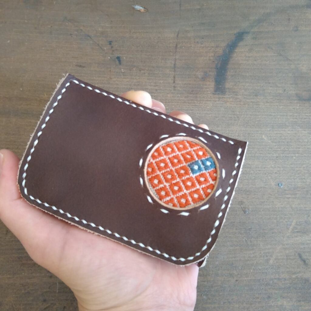 本革とこぎん刺しの小銭入れ