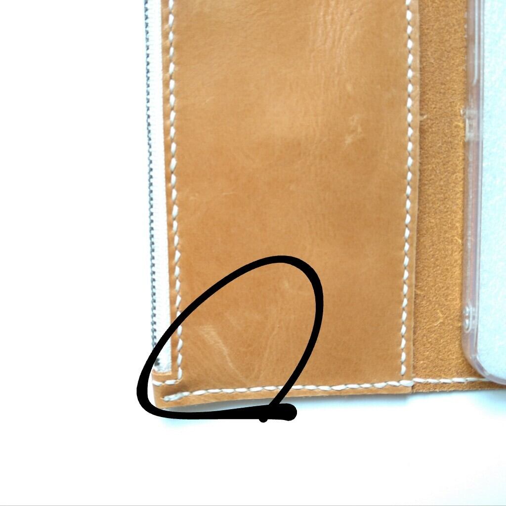裏面はソフトクリアケースを縫い付た糸が4箇所。